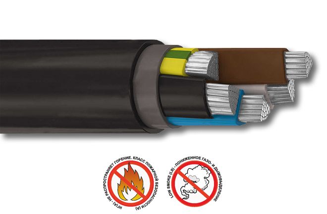 Кабель силовой с алюминиевой токопроводящей жилой с изоляцией и оболочкой из поливинилхлорида (ПВХ), не распространяющий горение, с низким дымо- и газовыделением, на напряжение 0,66-1кВ.